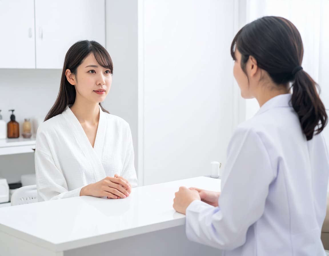 肌の状態を詳しく診察します。ニキビ跡の深さや広がり、毛穴の状態、赤みの程度などを確認し、どのメニューが最適かを判断します。施術内容、効果、リスクについて詳しくご説明します。ご不安な点やご要望は、遠慮なくお伝えください。