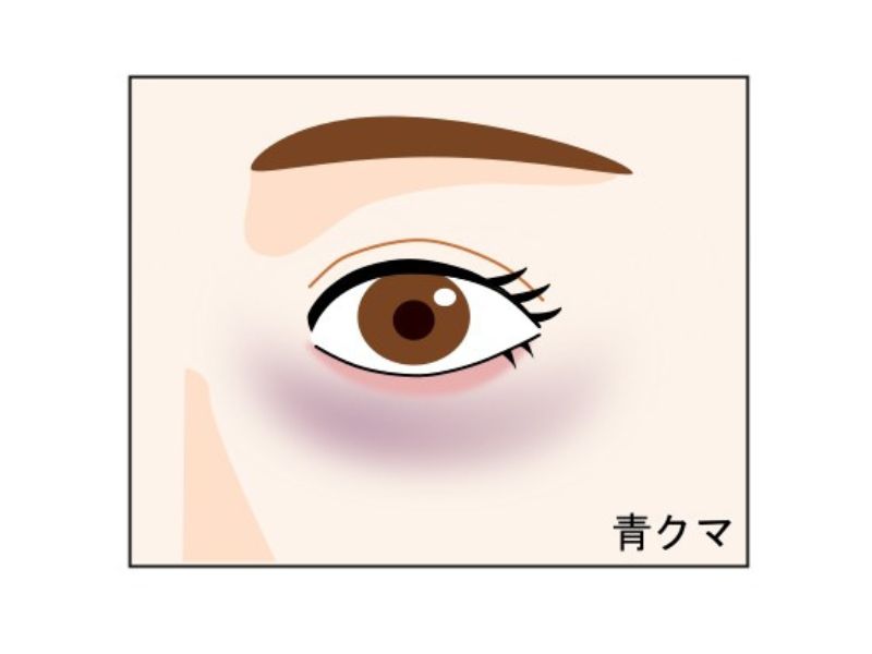 青クマは、目の下の血行不良により、皮膚の薄い部分から血管が透けて見えることが原因です。睡眠不足、疲労、冷え、眼精疲労などの生活習慣が影響します。